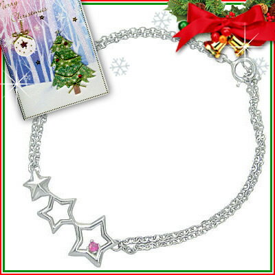 クリスマス限定商品今ならラッピング無料◆クリスマス限定Xmasカード付◆( 7月誕生石 ) シルバー ルビーブレスレット(スターモチーフ)★送料無料【SUEHIRO】